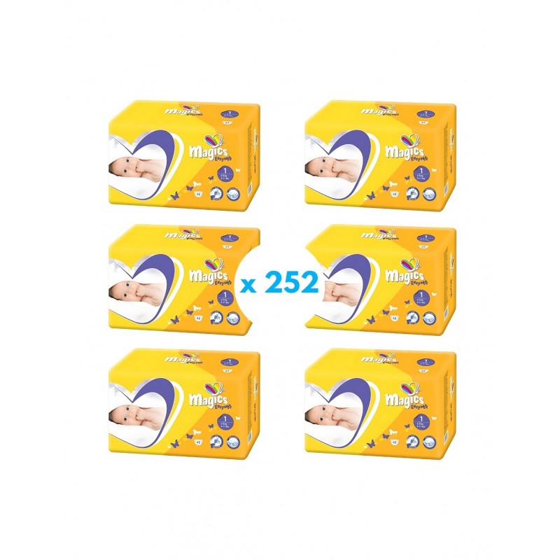 Caja de Pañales Magics Easysoft talla 1 de 252 unidades. (2 - 5 kg)