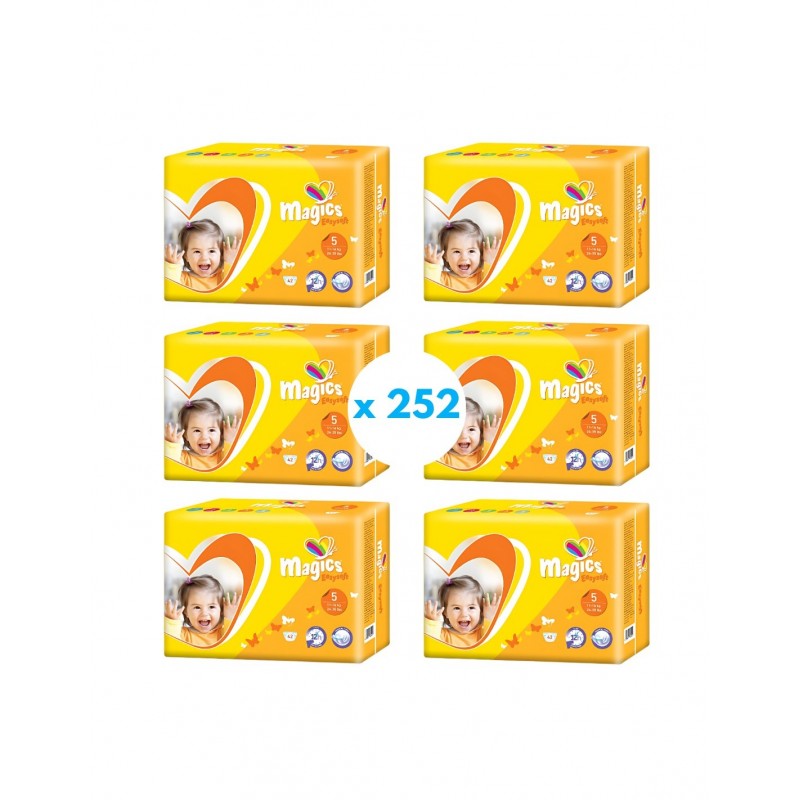 Pañales Magics Easysoft talla 5. Contiene 6 Paquete de 42 unidades cada uno. (11 - 16 kg)